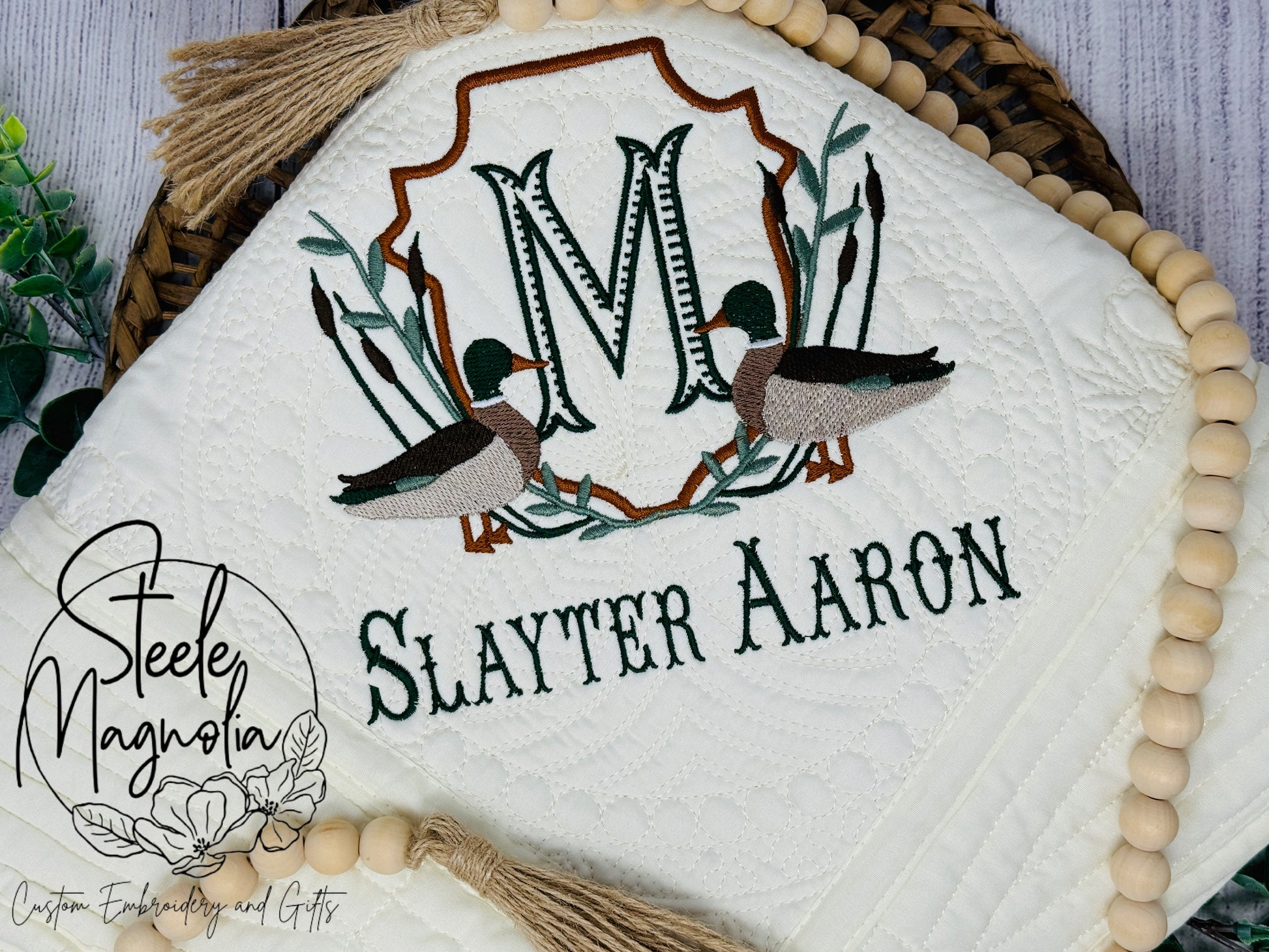 This high-quality baby heirloom blanket with the unique detailed mallard design (pictured on ivory) is a hit at every baby shower! Spoil your little one with this quilt that can remain a treasured keepsake for years to come.